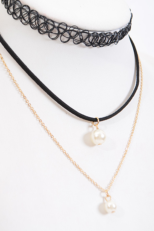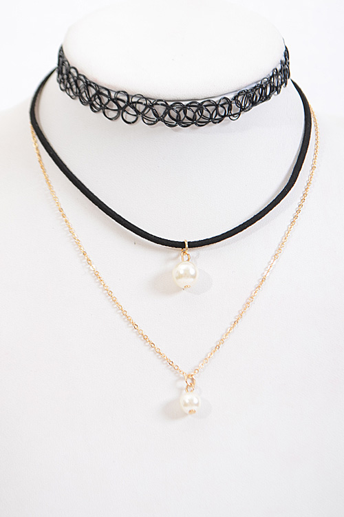 - * Multi Layered Choker With Faux Pearl * 16.75 x 0.1" approx. * 19" approx.