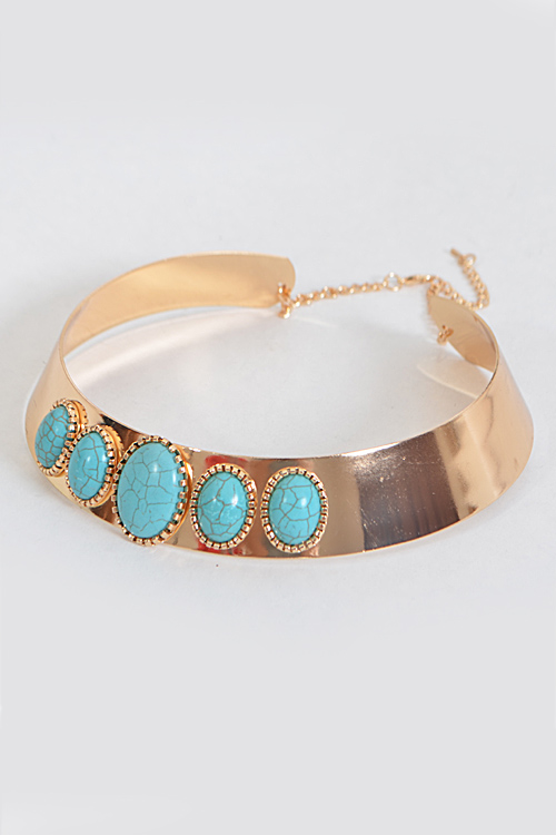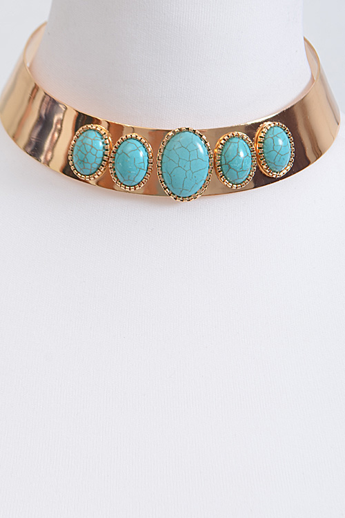 • * Solid Choker With Antique Inspired Stone Emblem * 5.6 x 5.5" approx.
