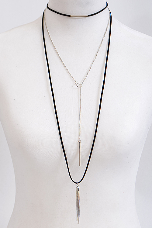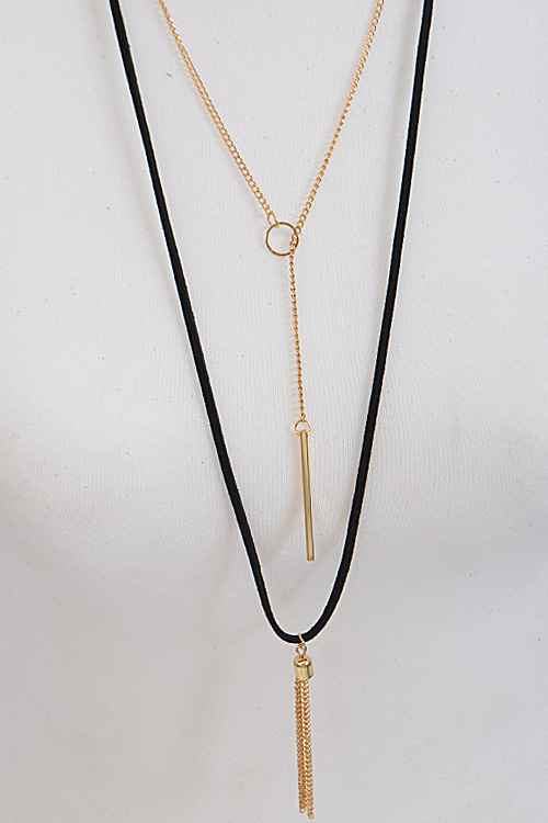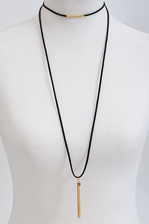 - * Multi Layer Long Choker Necklace With Tassel Details * 15" approx. * 26.5" approx.