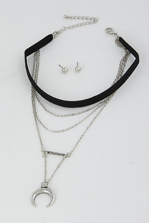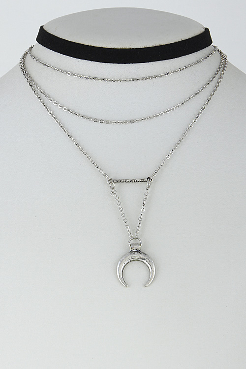 • * Simple Multi Layer Choker With Crescent Set 6HBG3 * 12" approx. * 14" approx.