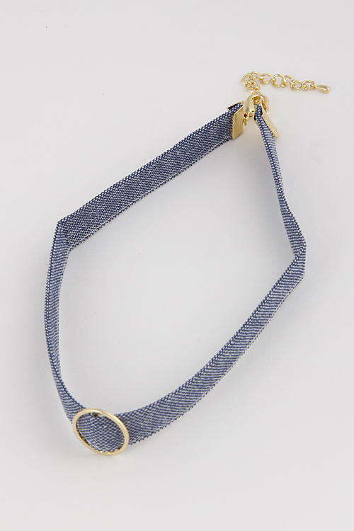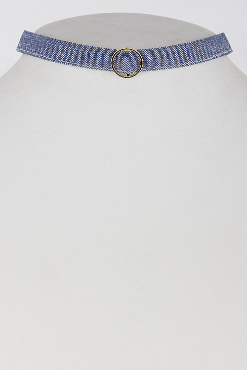 • * Denim Inspired Simple Choker With Circle 6FCC8 * 0.6 X 12" approx.