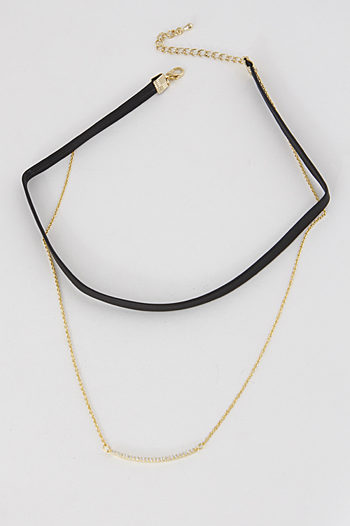 • * Plain Yet Simple Layered Choker Necklace With Bar 6ICE5 * 12"approx.