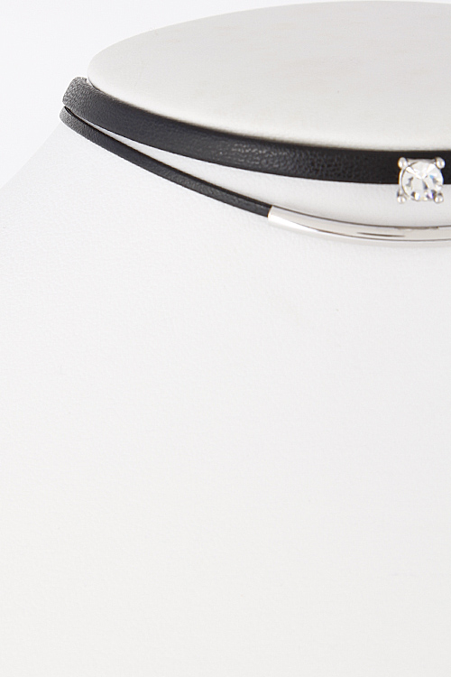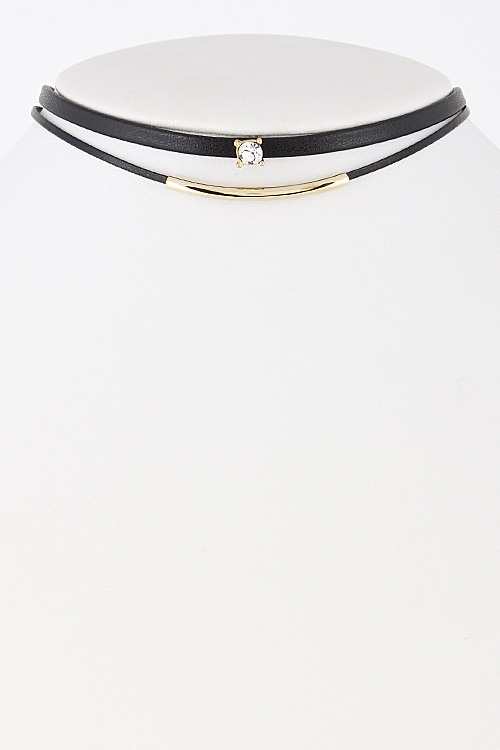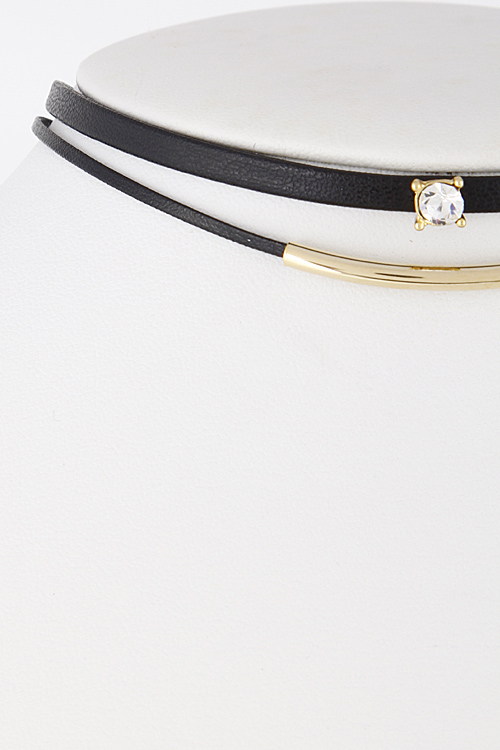 - * Double Layer Choker Necklace With Rhinestone 6CBH3 * 12" approx.