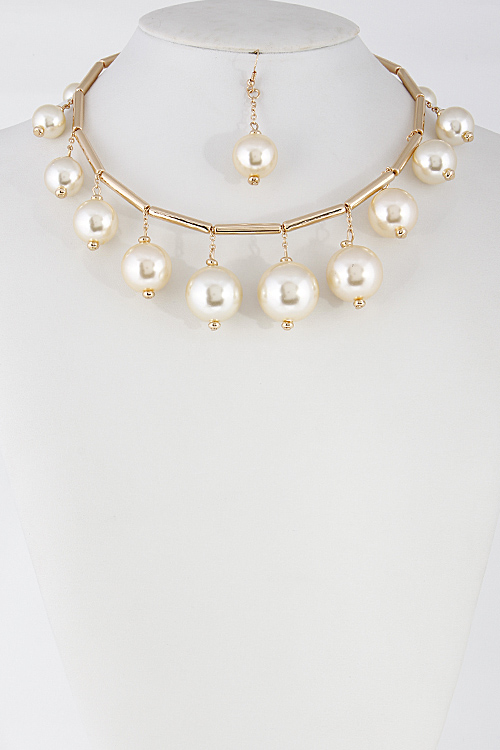 - * Elegant Necklace With Faux Pearl Set 6DCD2 * 12" approx