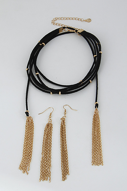 - * String Stud Choker With Tassel Set 6HCG5 * 12" approx.