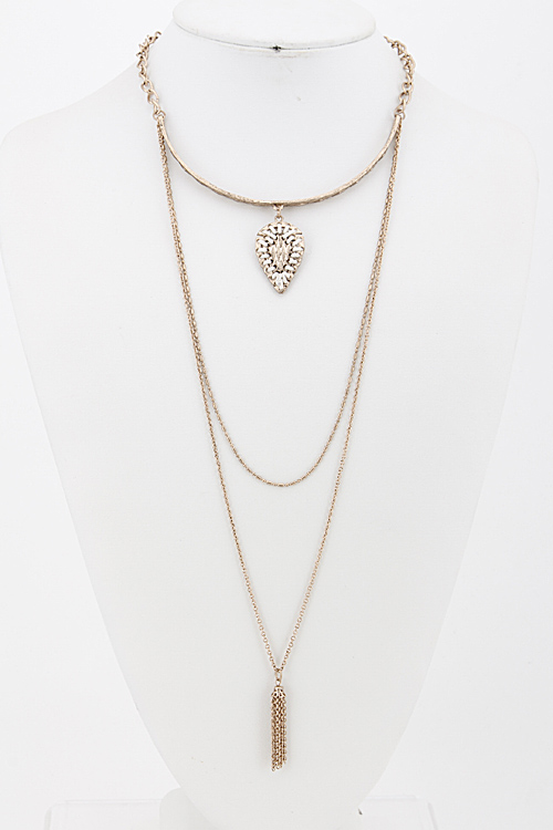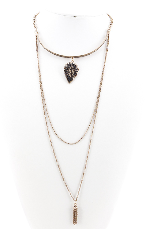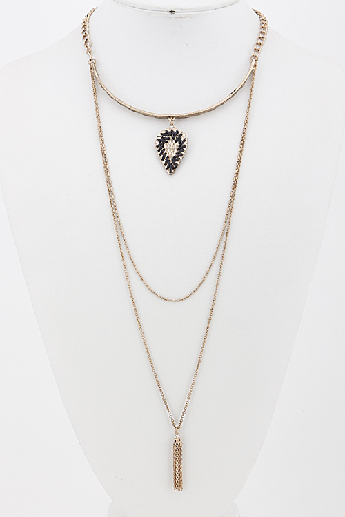 - * Raindrop Pendant Collar Chain Tassel Layer Necklace 5GCD1 * 13 x 9" approx.