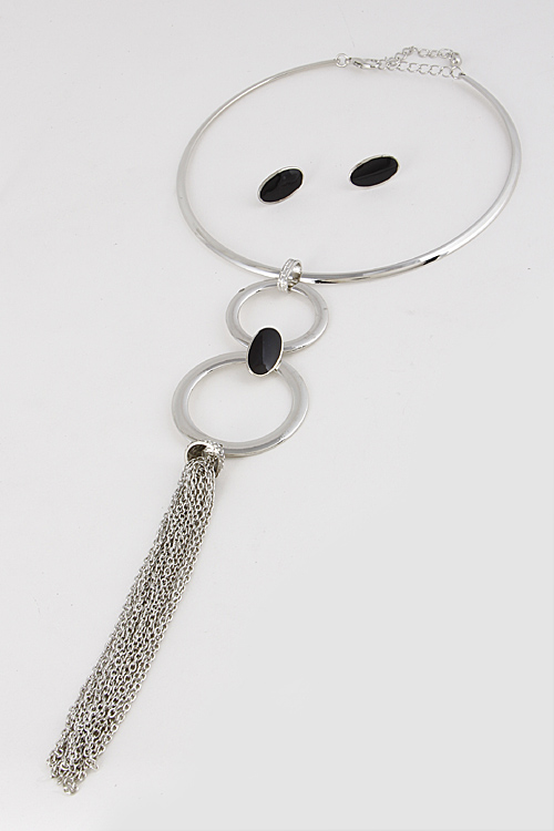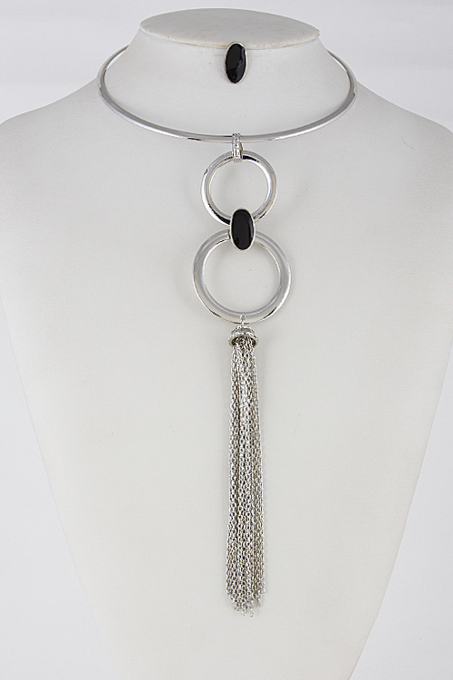 • * Solid Circle Drop Choker WIth Tassel Set 6FBG4 * 10" approx.