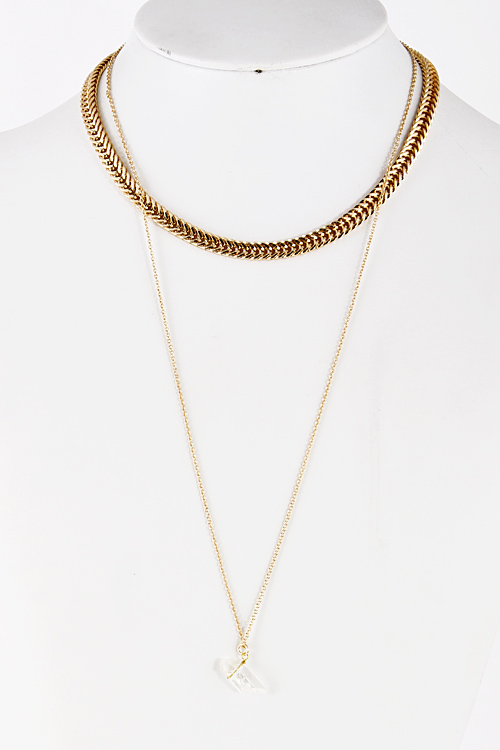 - * Flat Collar Chain Stone Pendant Necklace 5CAF5 * 22" approx.