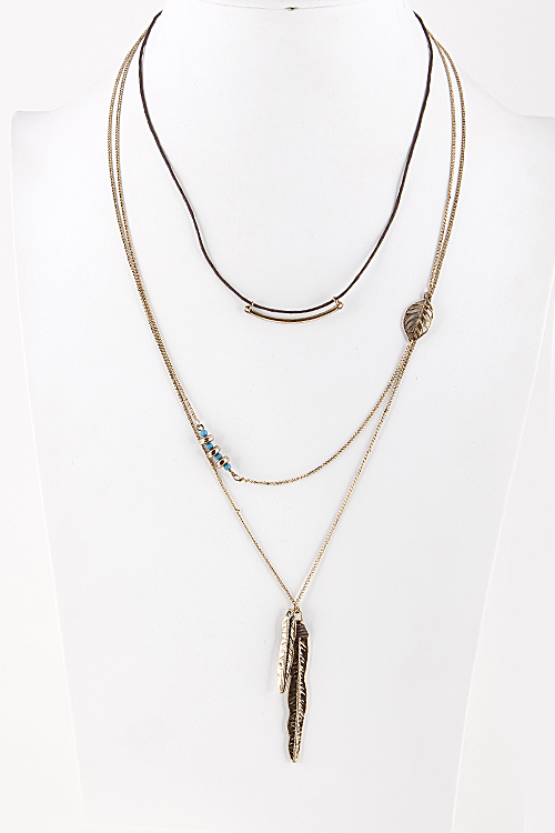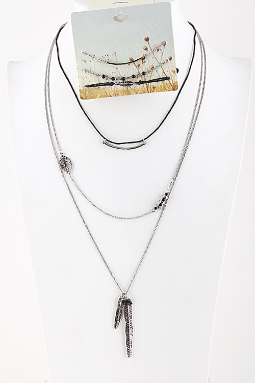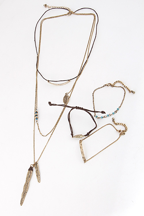 • * Long Layered Feather Necklace and Bracelet Set 5ICE3 * 22" approx.