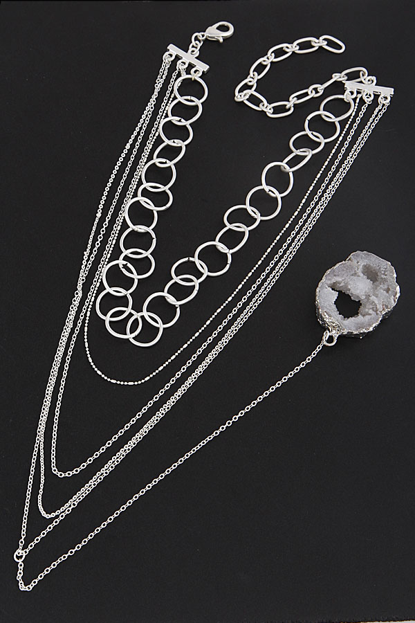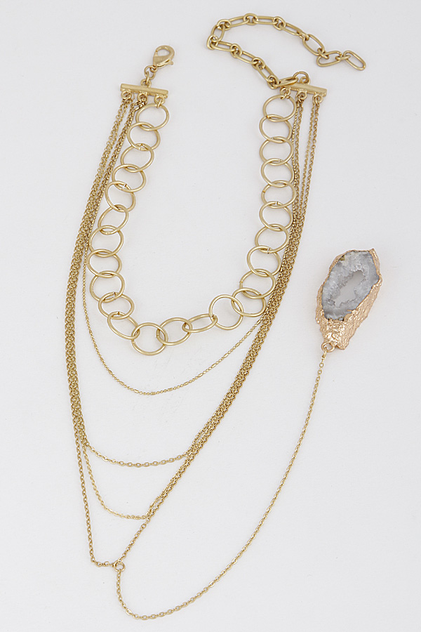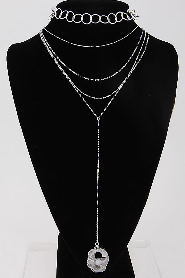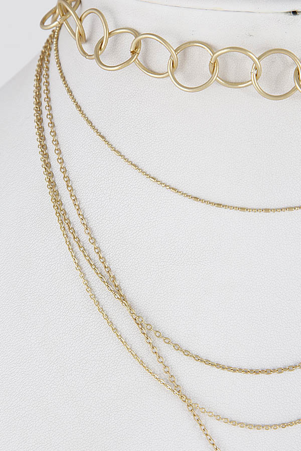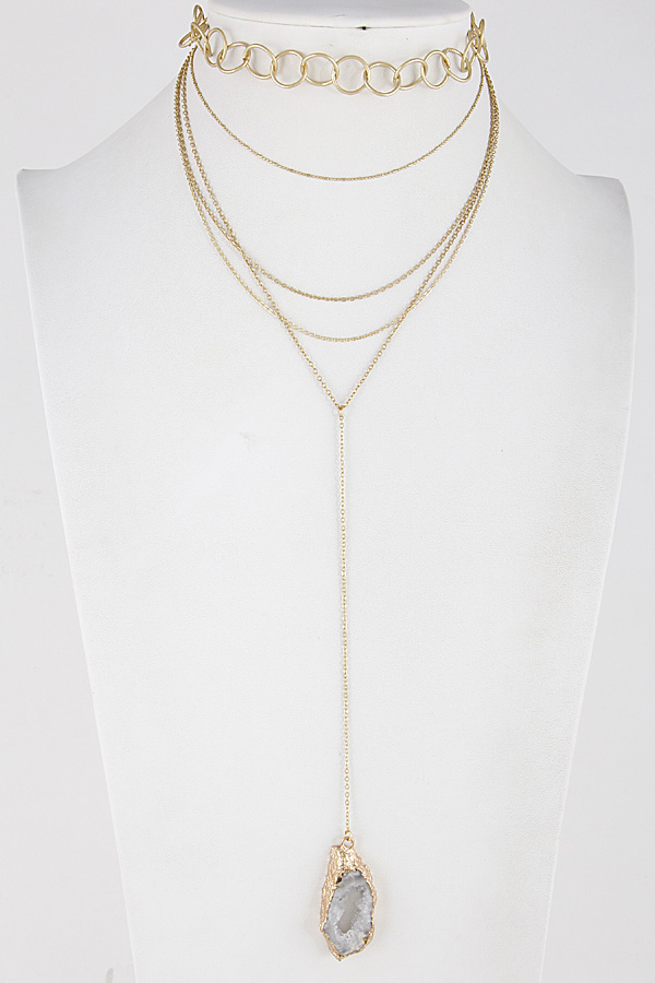 • * Multi Layer & Antique Stone Choker Necklace 7LAH5