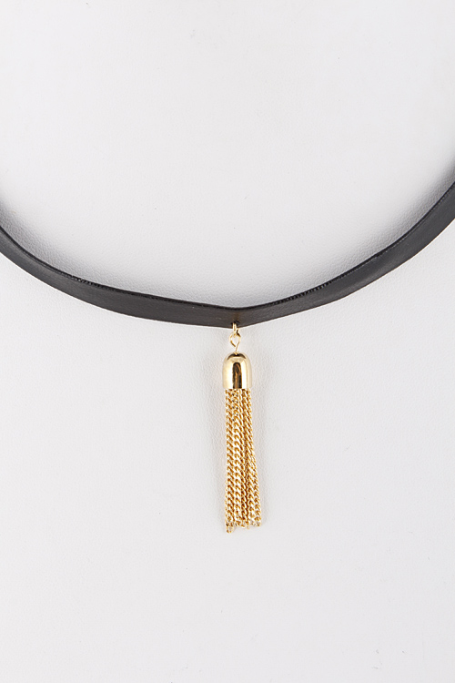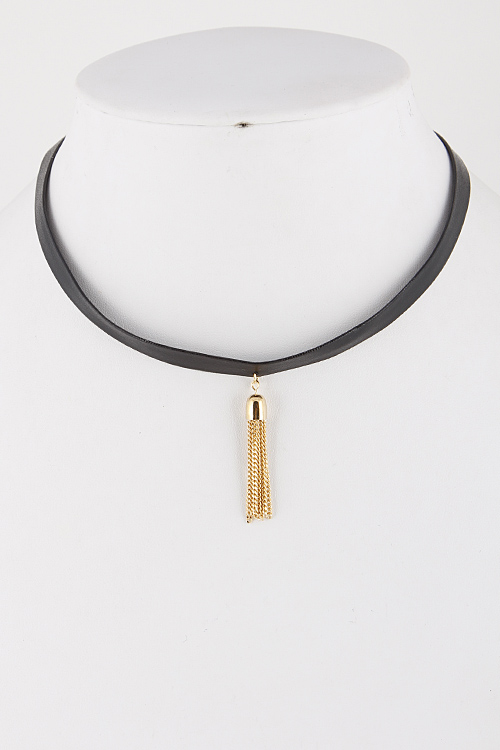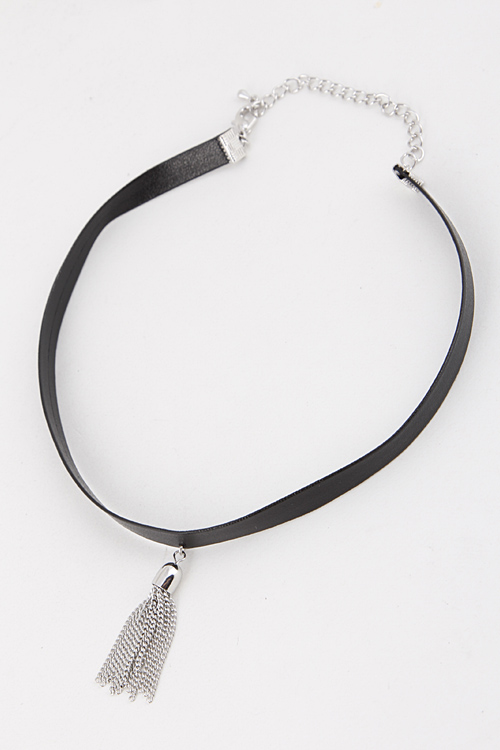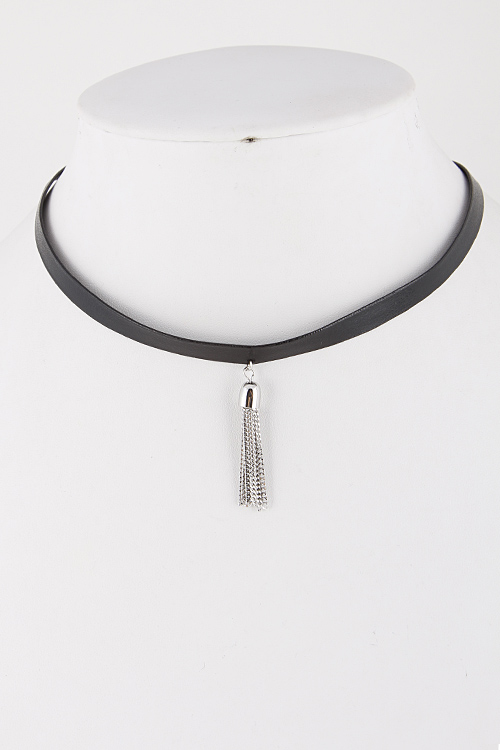 • *Black Faux Leather Choker with Chain Tassel Detail 5JAB10 * 6" approx.