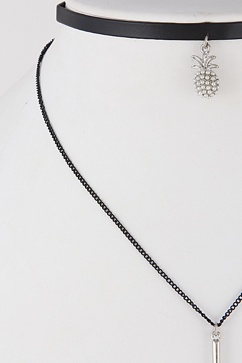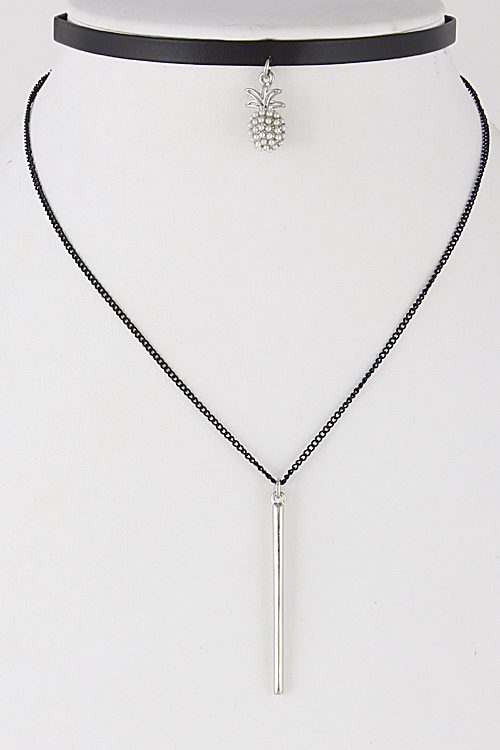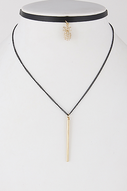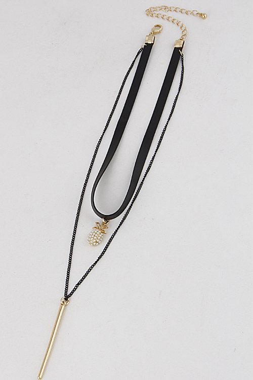 • * Multi Layer Choker Necklace With Pineapple & Bar 6IBF10 * 12" approx.