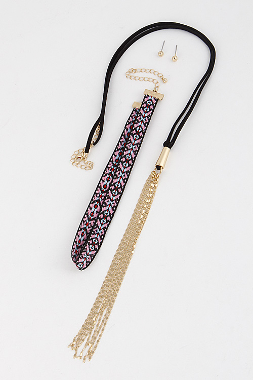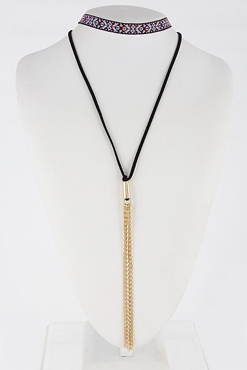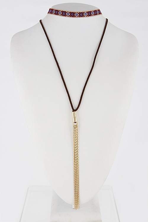 - * Tribal Inspired Long Choker Tassel Necklace 6EBA7 * 24" approx * 0.5 X 12" approx