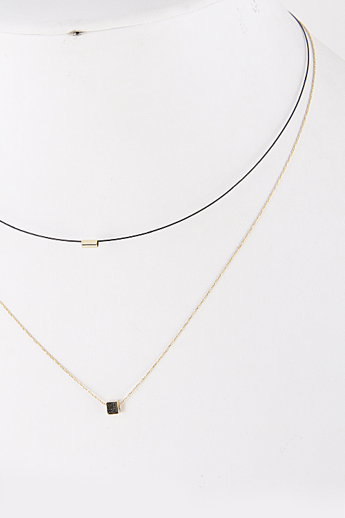 - * Two Layered Choker Necklace with Shape Charm Detail 5JAE10 * 16" approx.