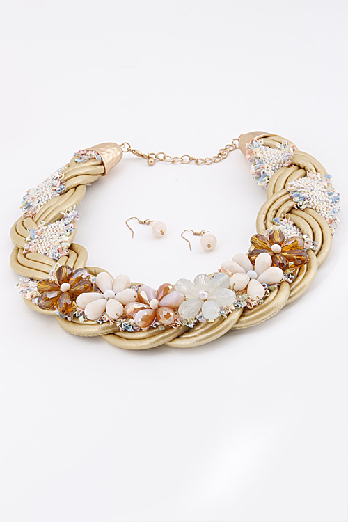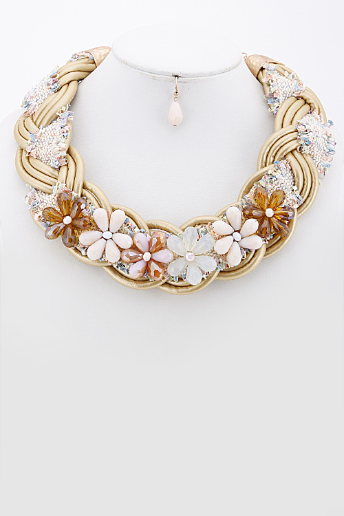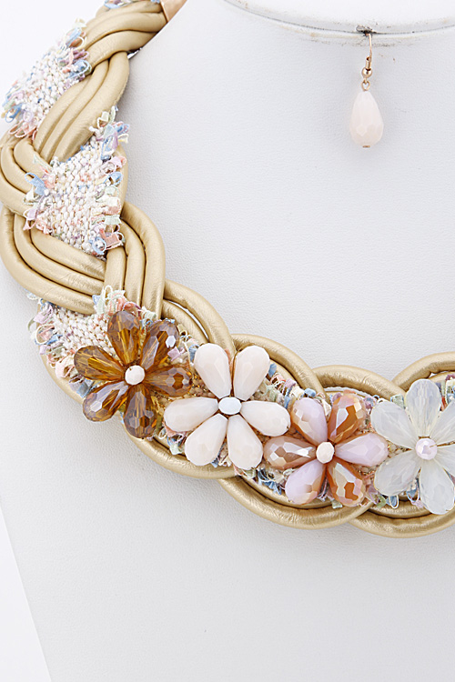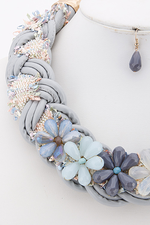 - * Mixed Flower and Fabric Statement Necklace Set 6ACE10 * 16 X 1.7" approx.