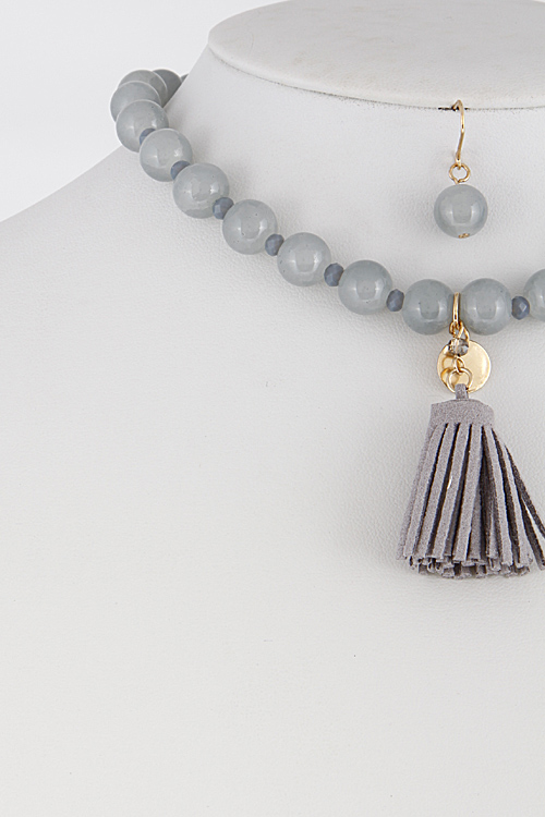 - * Casual Beaded Tassel Necklace Set 6CCA5 * 12" approx.