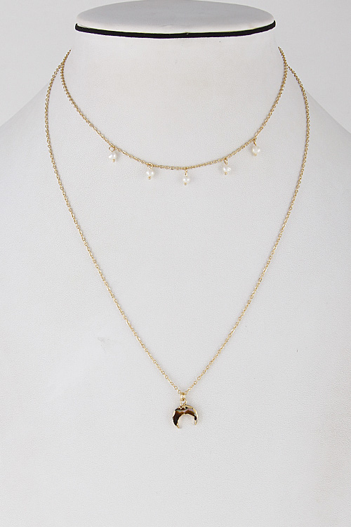 • * Crescent Choker Necklace Set 7EAB4 * 12" Approx.