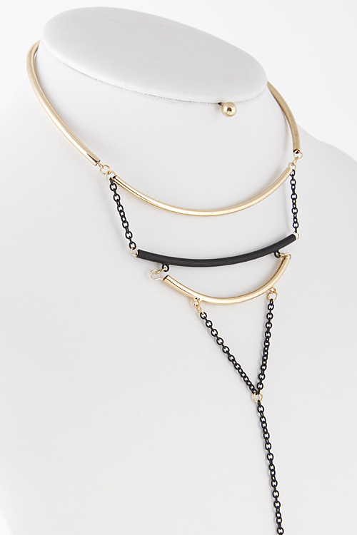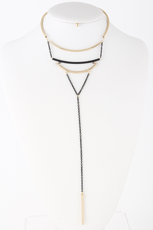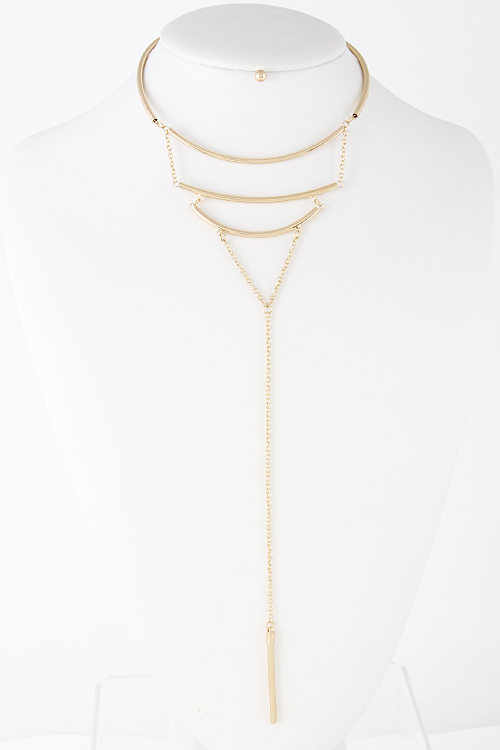 - * Cut Bar Collar Chain Long Drop Necklace 5FBI4 * 10 x 11" approx.
