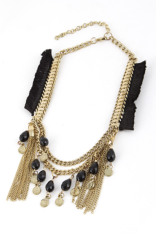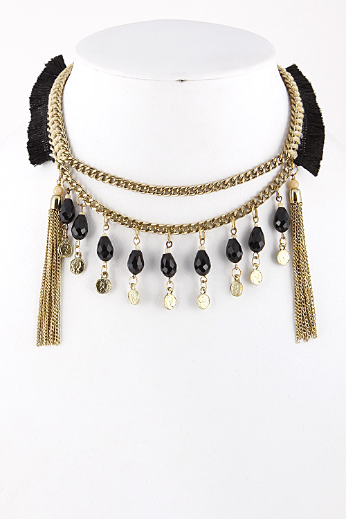 • * Collar Necklace with Tassle and Bead Detail 5ICE2 * 14" approx.