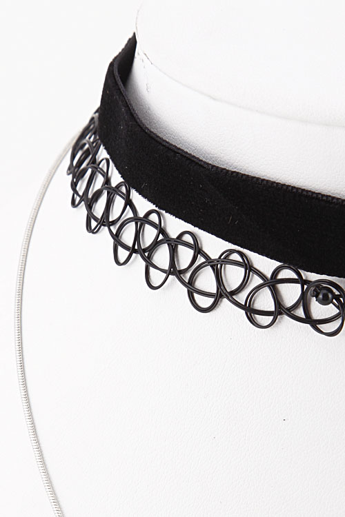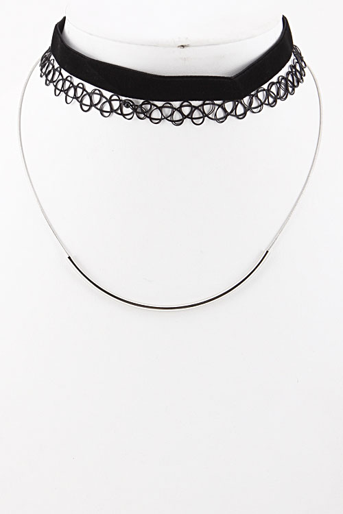 • * Lace Choker Pendant Set Necklace 5ICE5 * 14" approx.