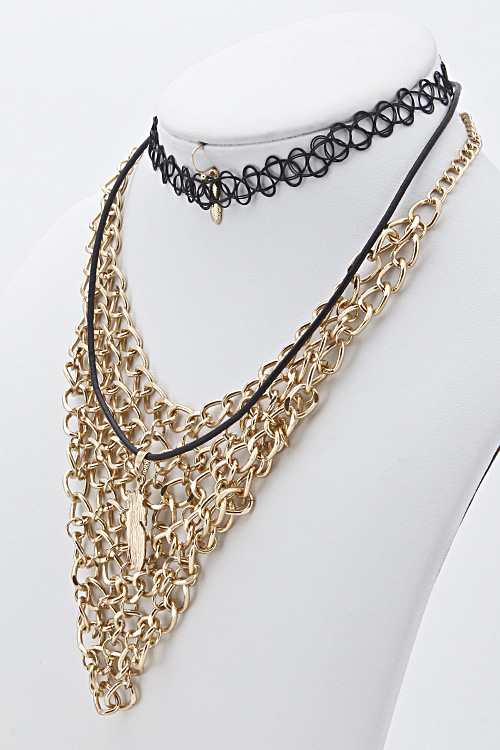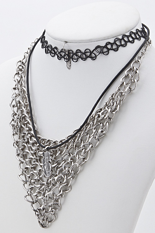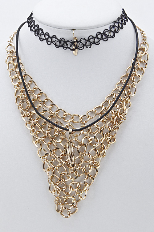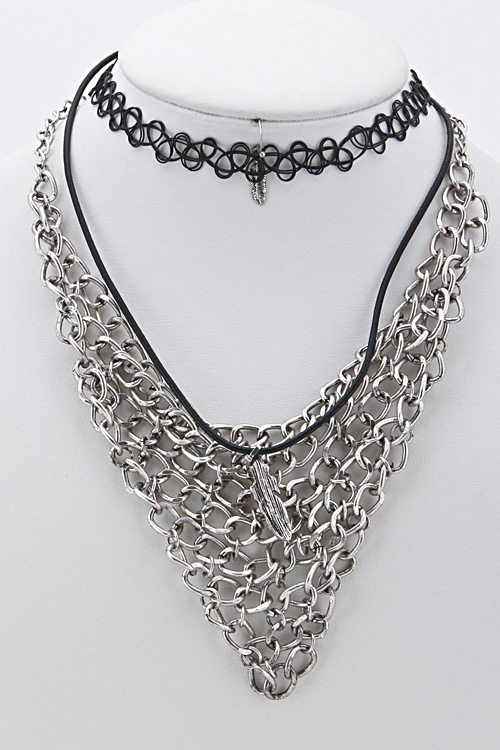 V Shape Chain Linked Collar Double Necklace 5GAH6