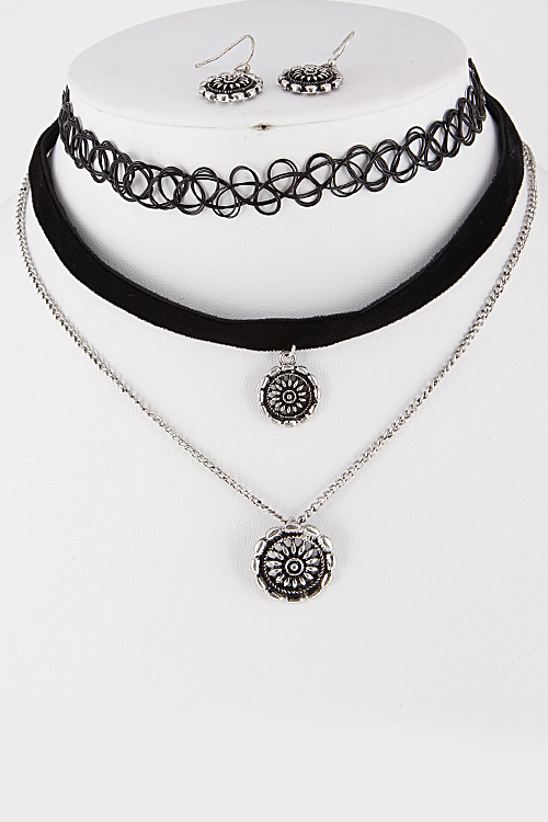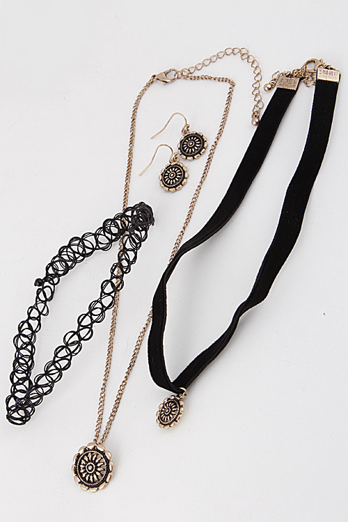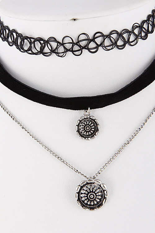 • * Gatsby inspired Three Charm Necklace Set 5JAF2 * 19.2" approx.