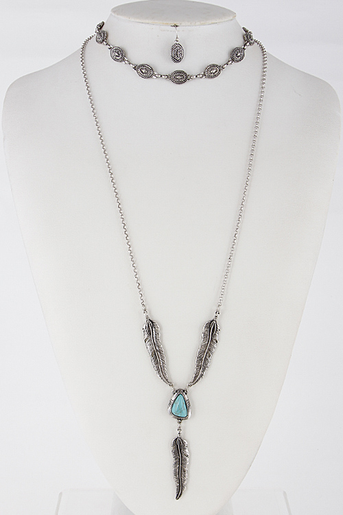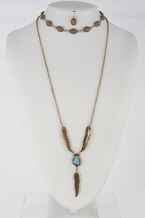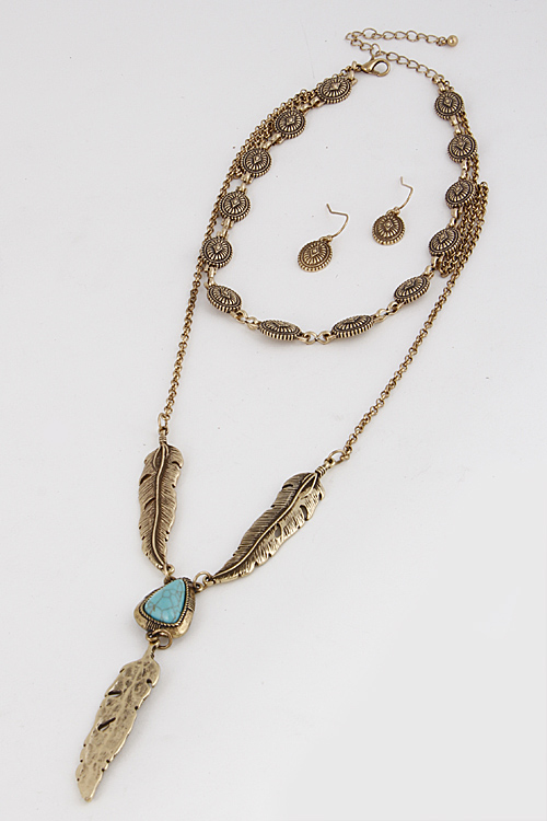 - * Long Antique Inspired Leaf Necklace Set 6FBH8 * 12" approx. * 28" approx.