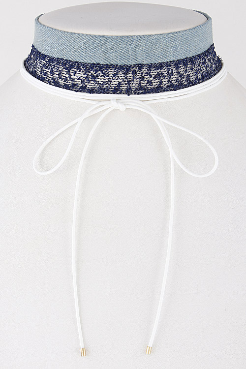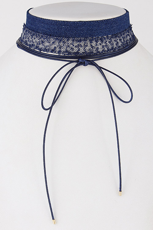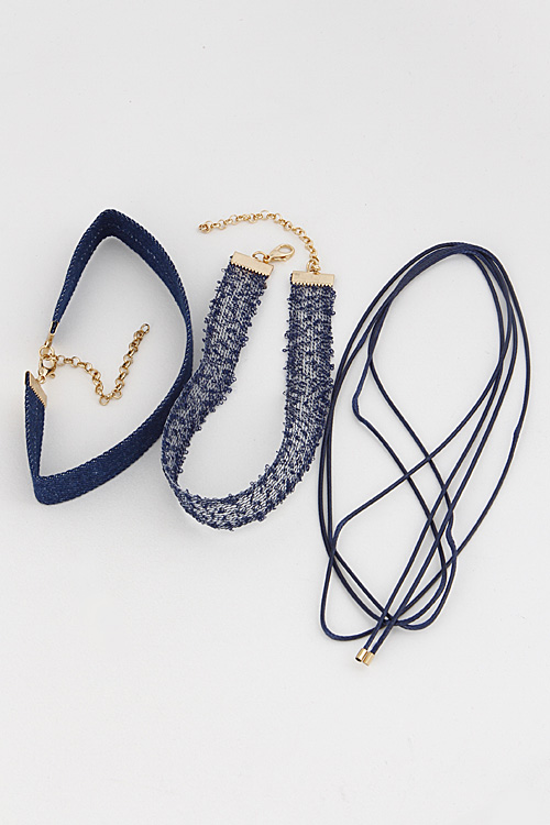 - * Cute Denim Choker Necklace Set 7BBC9 * 0.8 X 12" approx. * 64" approx.