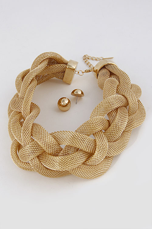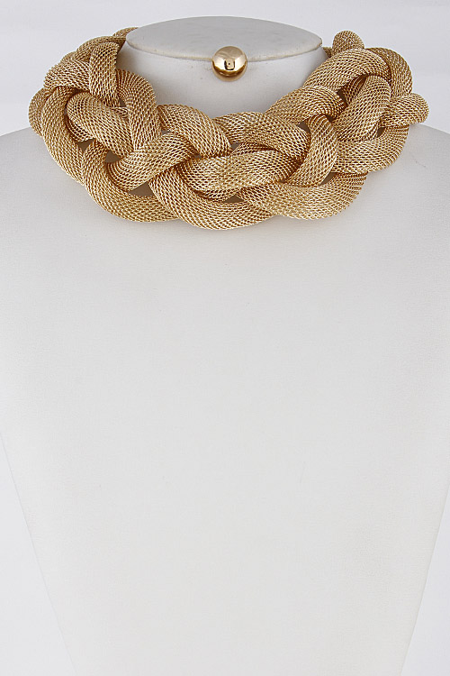 - * Thick Braided Necklace Set 6FBH6 * 2.2 X 14" approx.