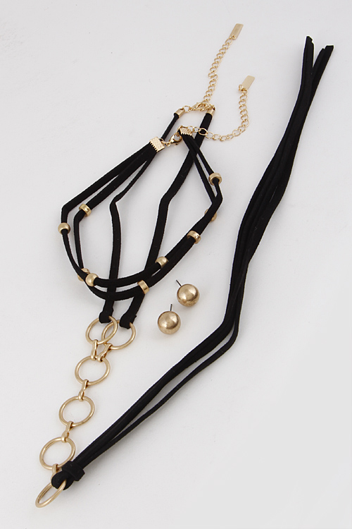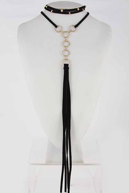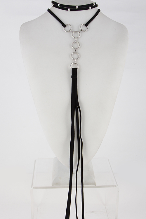 • * Simple Long Stud Choker With Tassel 6FCB4 * 12" approx. * 14" approx.