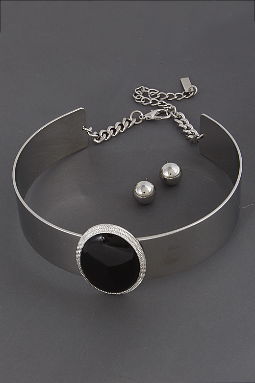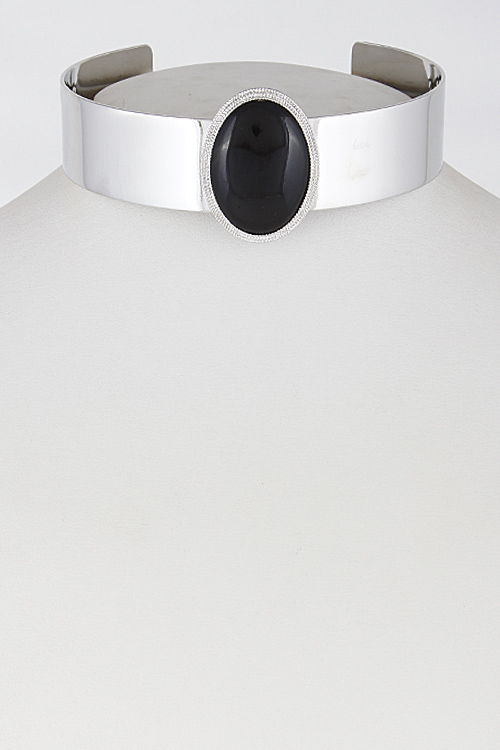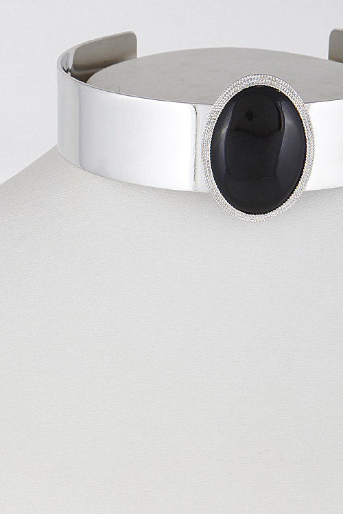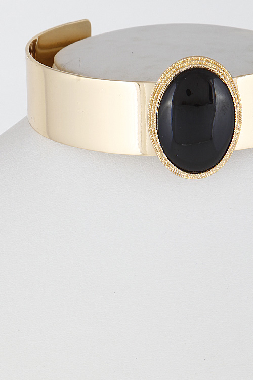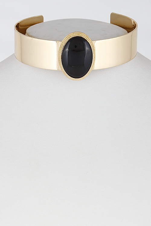 • * Simple Open Choker With Oval Stone 6FCA8 * 1 x 10" approx.