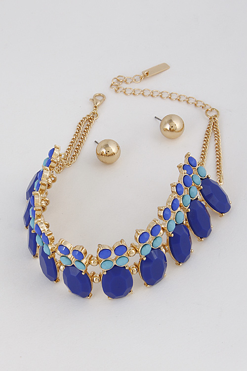 • * Formal Inspired Stone Necklace Set 6FCH3 * 1.2 x 10" approx.