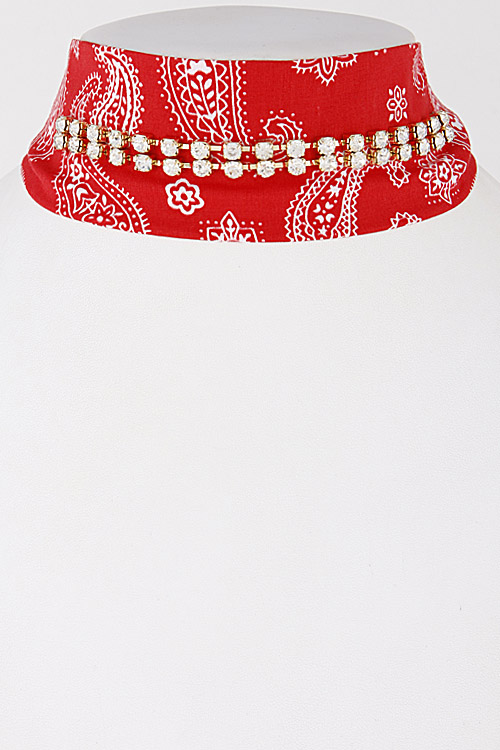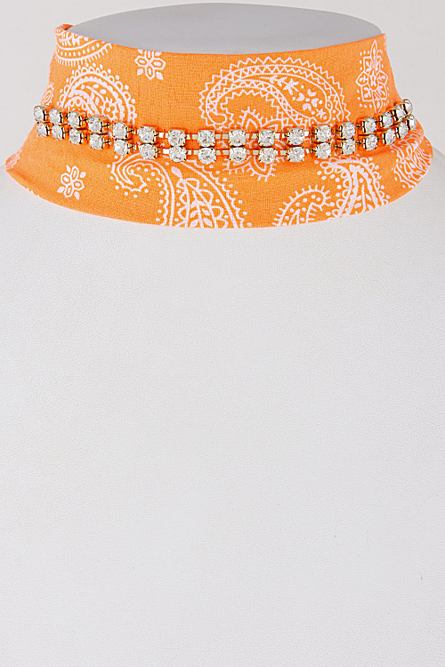 - * Bandana Choker Necklace With Rhinestones Attachment 7ABA1 * 2 X 24" approx.
