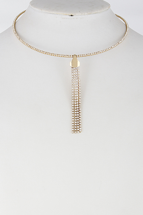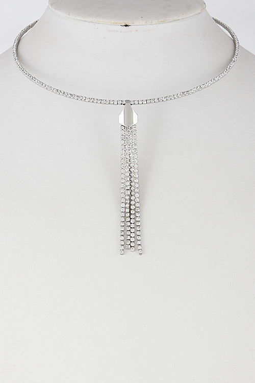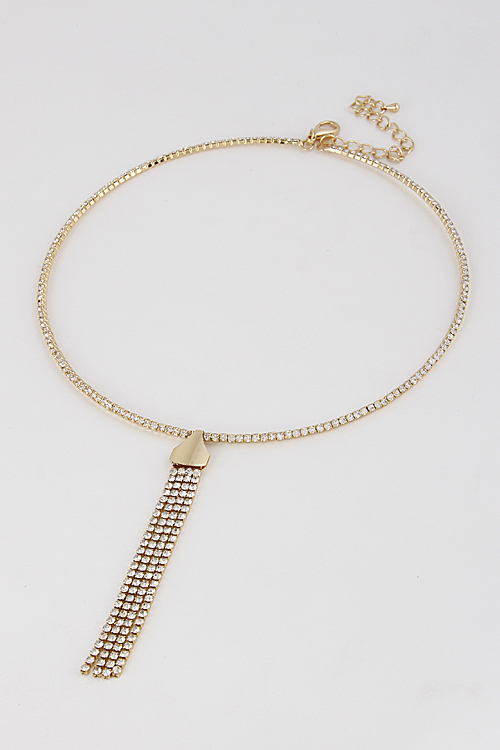 - * Rhinestone Choker With Simple Tassel 6FCE2 * 10" approx.