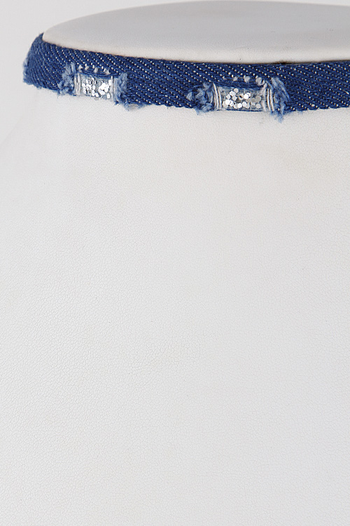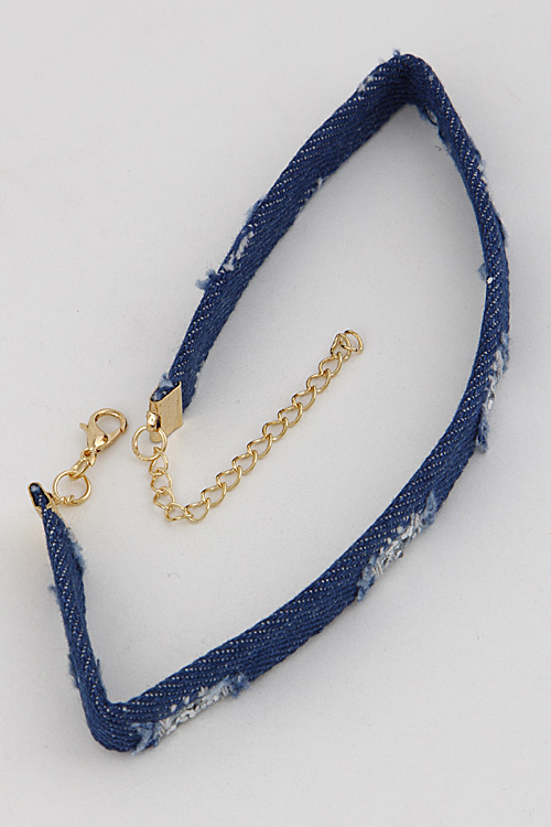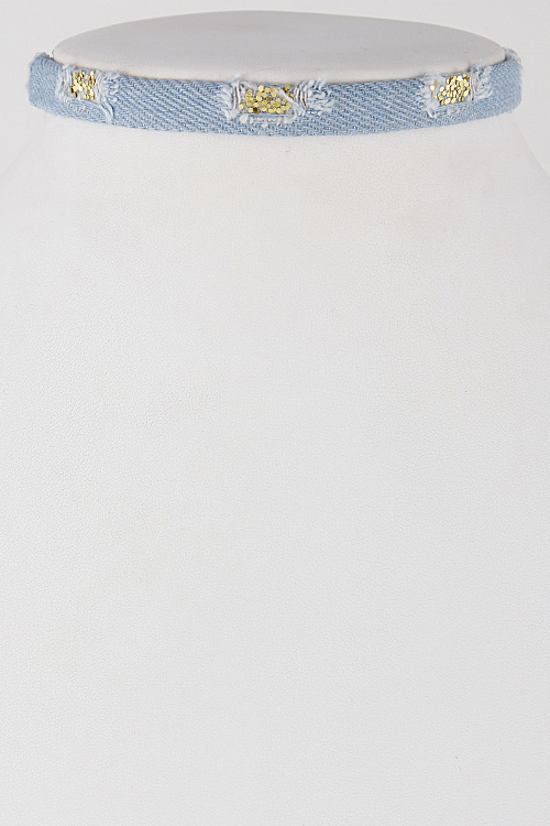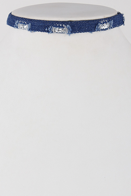 • * Denim Inspired Choker Necklace with Shiny Stones 6KAF1 * 0.5 x 12" approx.