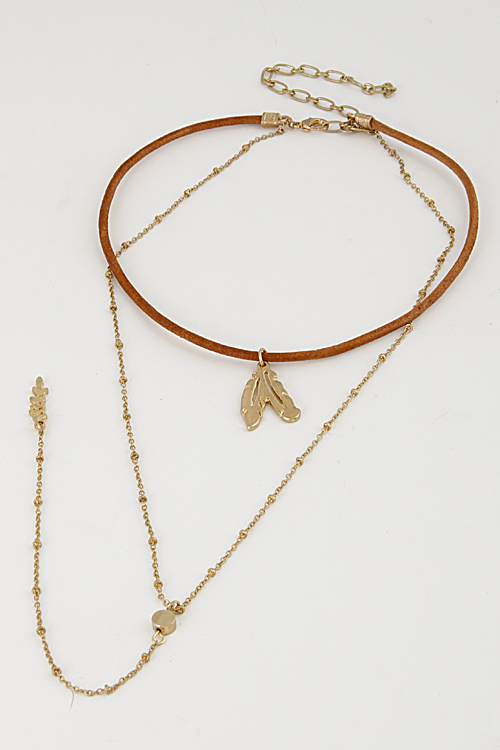 • * Simple Thin Long Choker With Leaf 6FAI6 * 12" approx.