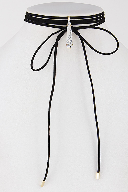 • * Bow Inspired Wrap Choker Necklace With Main Stone Detail 6LBB6 * 76" approx.