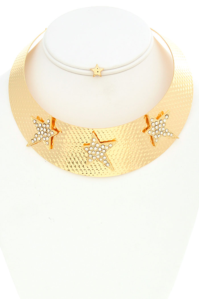 - * Trendy hammered textured necklace with star earrings * 13" approx. Length