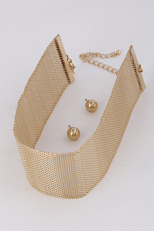 • * Solid Brick Patterned Choker Necklace Set 6IBA1 * 1.6 x 12" approx.