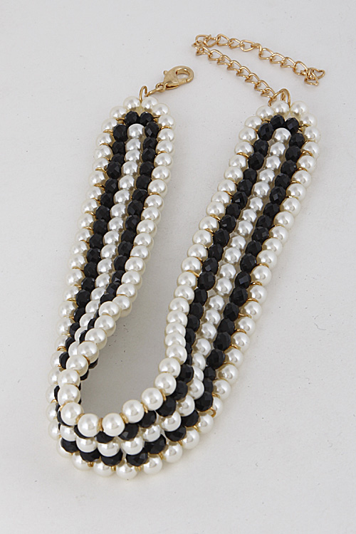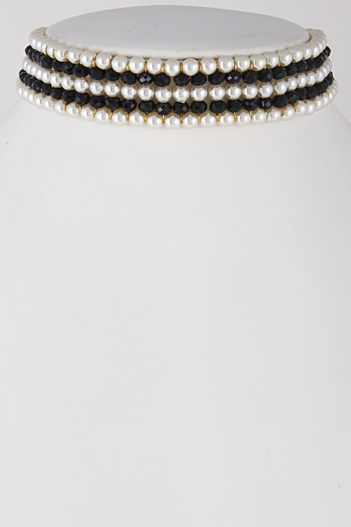 • * Faux Pearl Beaded Choker Necklace 6IBB4 * 1 x 12" approx.