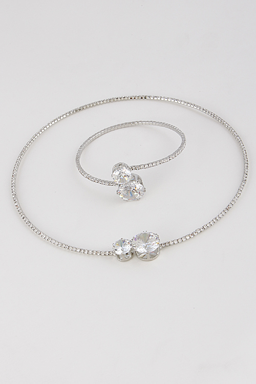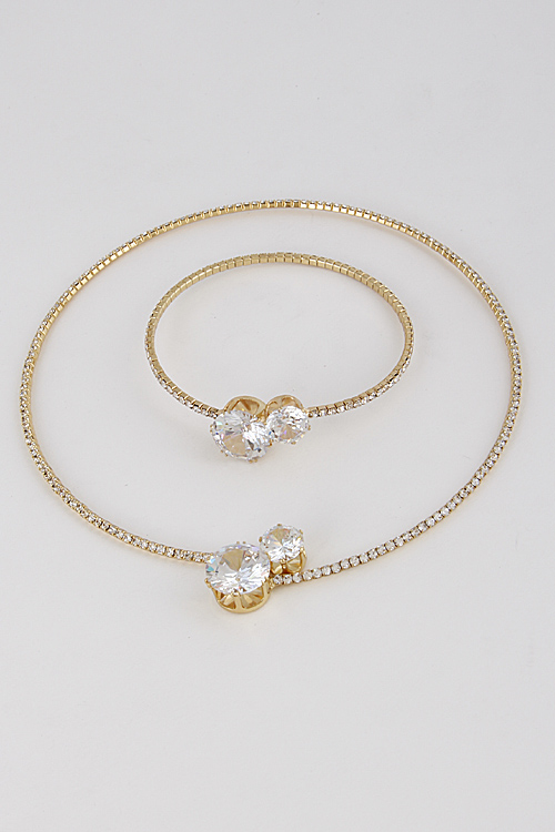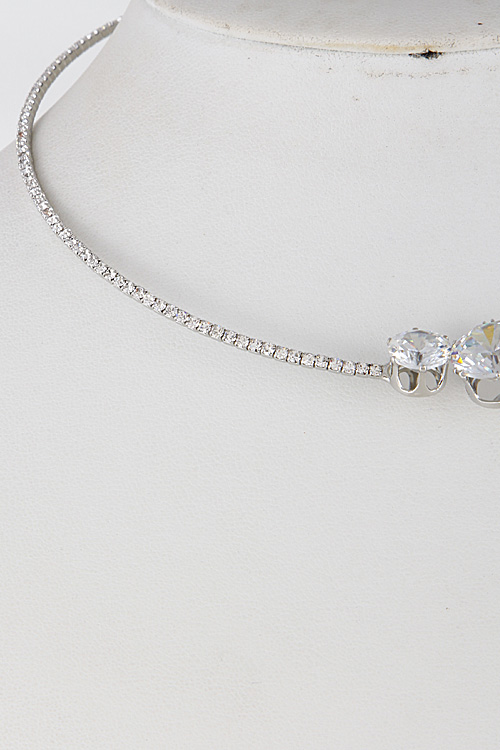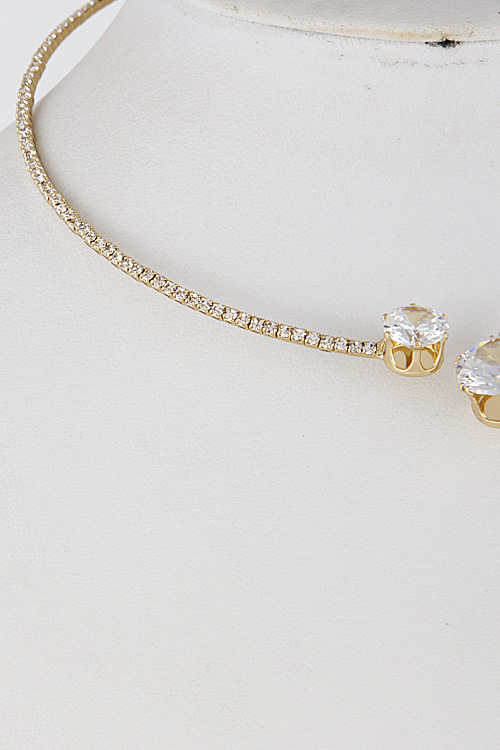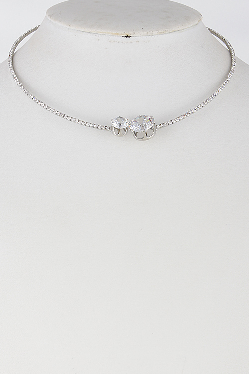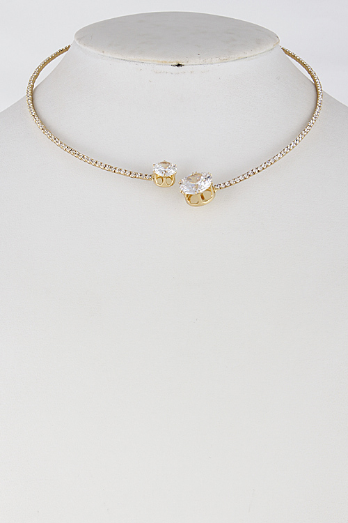- * Formal Rhinestone Choker Necklace 6FCE2 * 10" approx.