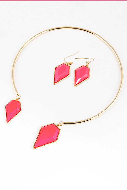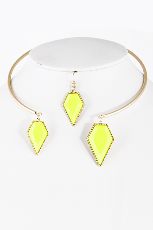 • * Neon Diamond Jewel Dangle Collar Necklace 5CAF1 * 5 x 5" approx.