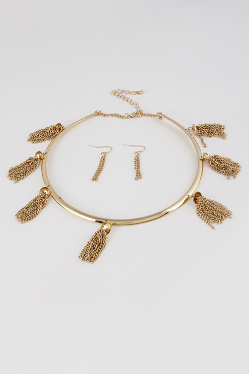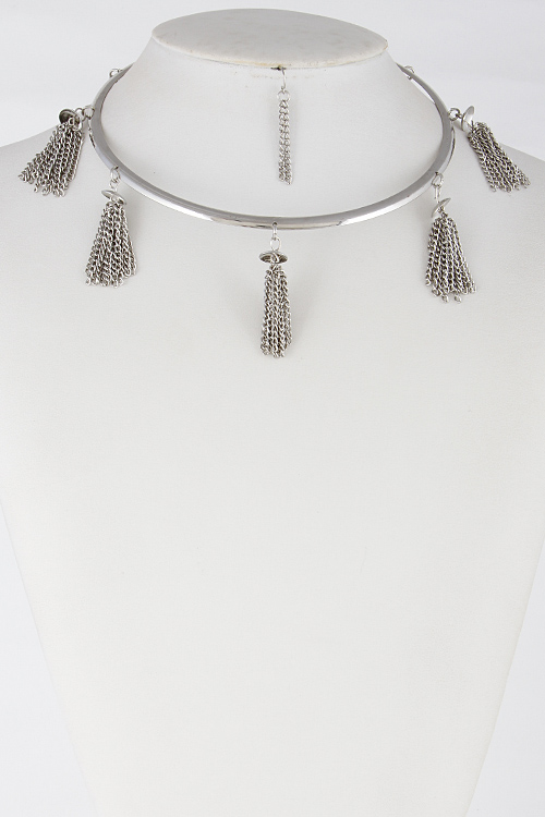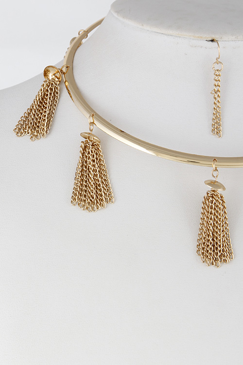 • * Thin Tassel Choker Necklace Set 6FCC4 * 12" approx.