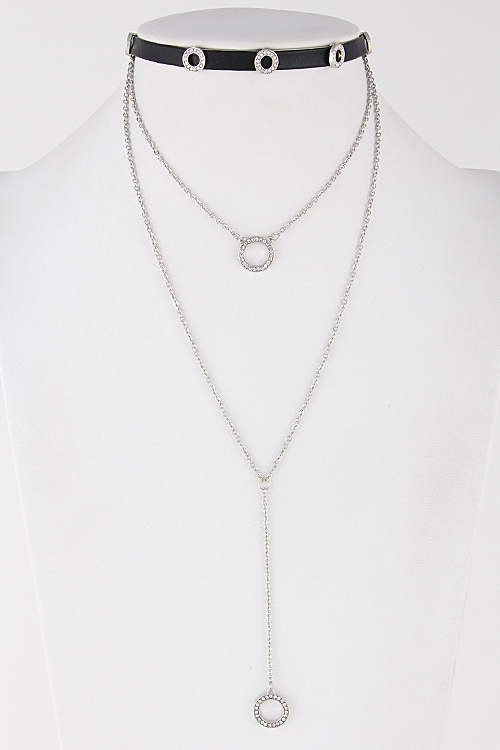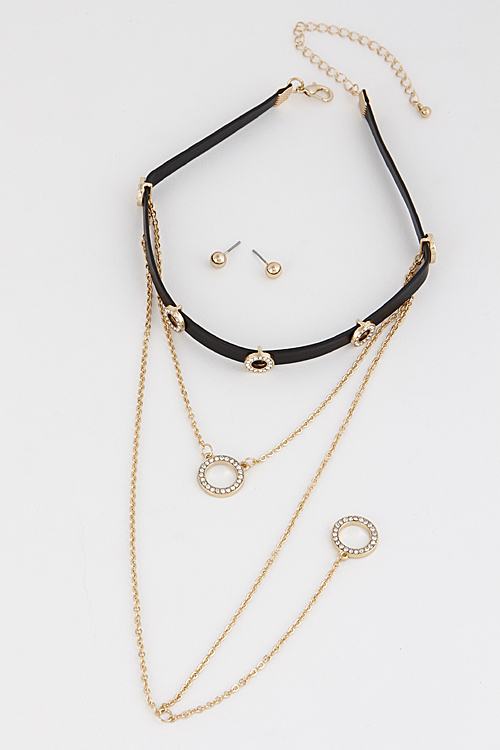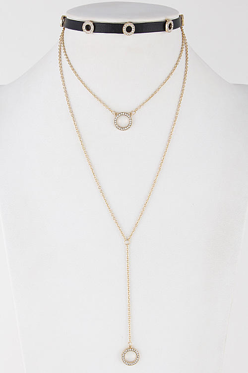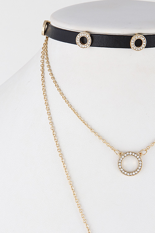 • * Womanish Choker Necklace With Rhinestones Circle Emblem 7ABA7 * 0.5 X 12" approx.