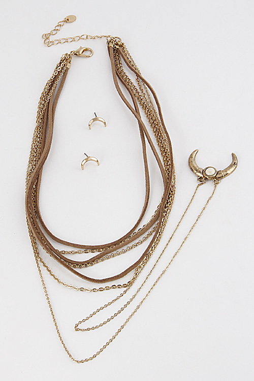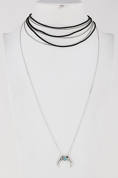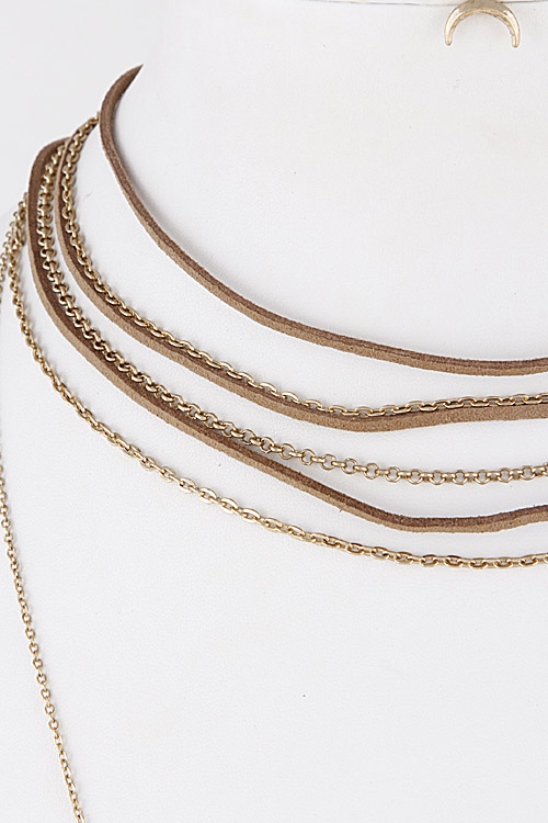 • * Thin Multi Layer Crescent Choker Necklace Set 6ICG5 * 16" approx.