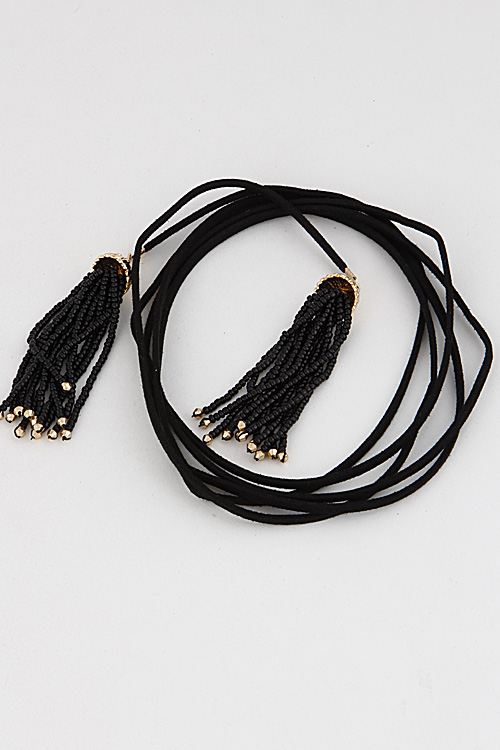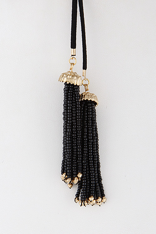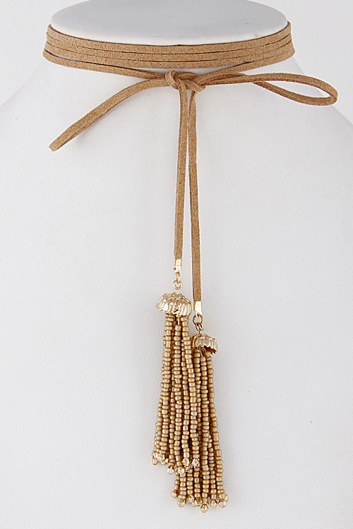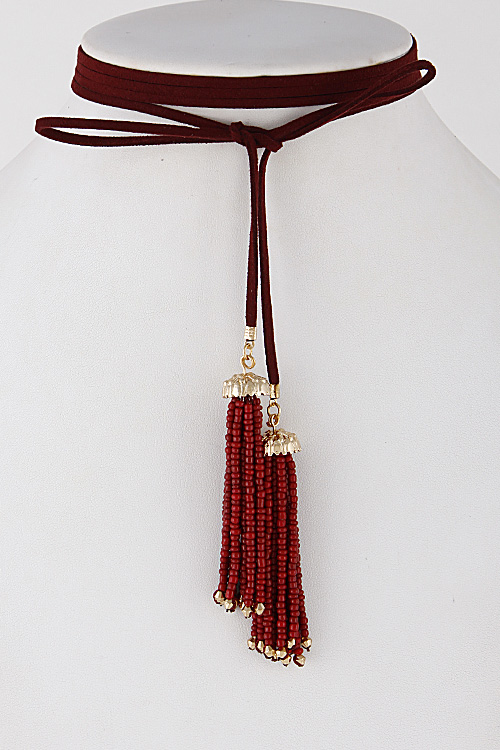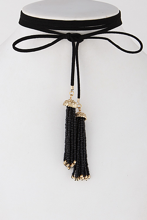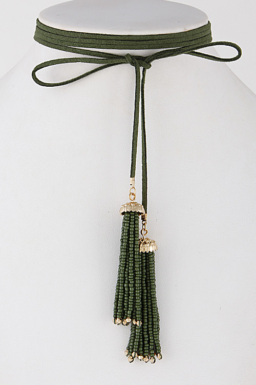 • * Glamorous Tassel Stone Beaded Pendant Choker Necklace 6LAB6 * 72" approx.