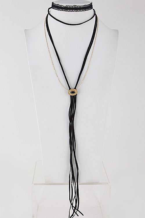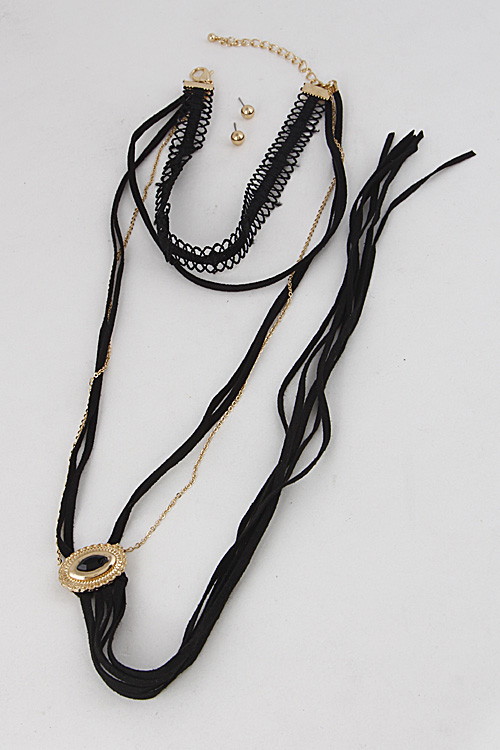 • * Long Choker Necklace With Fringes Set 6IBF3 * 0.8 x 12" approx.