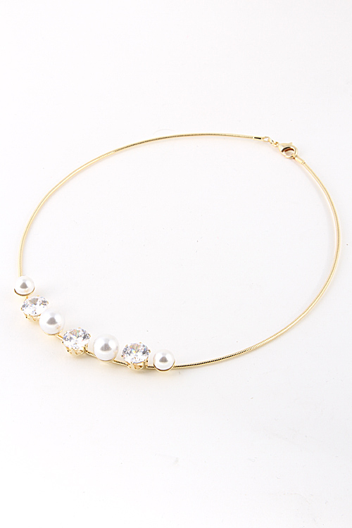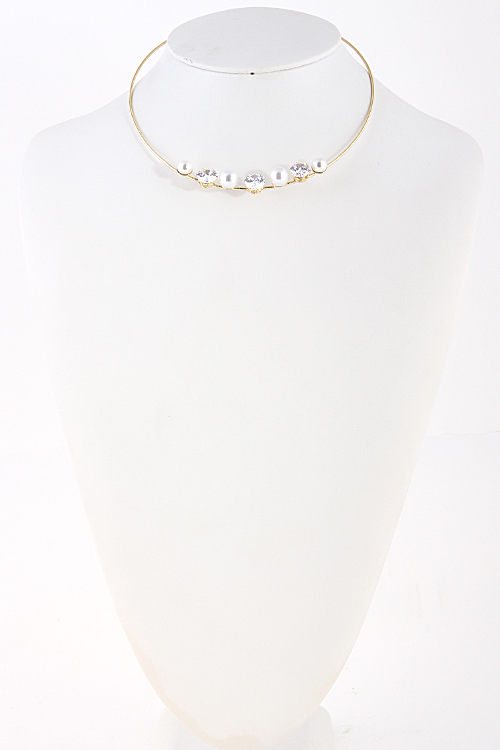 - * Pearl Rhinestone Lined Collar Necklace 5AAG1 * 5 x 5" approx.