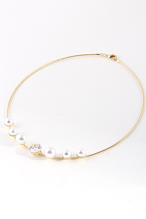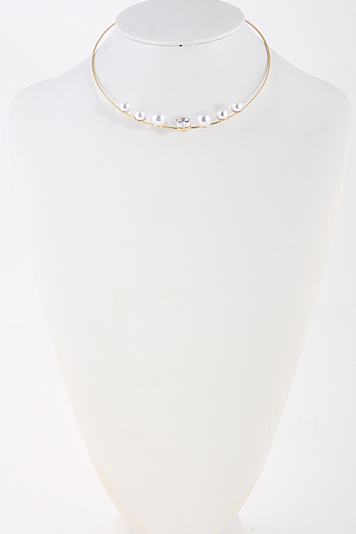 - * Rhinestone Centered Pearl Collar Necklace 5AAG1 * 5 x 5" approx.