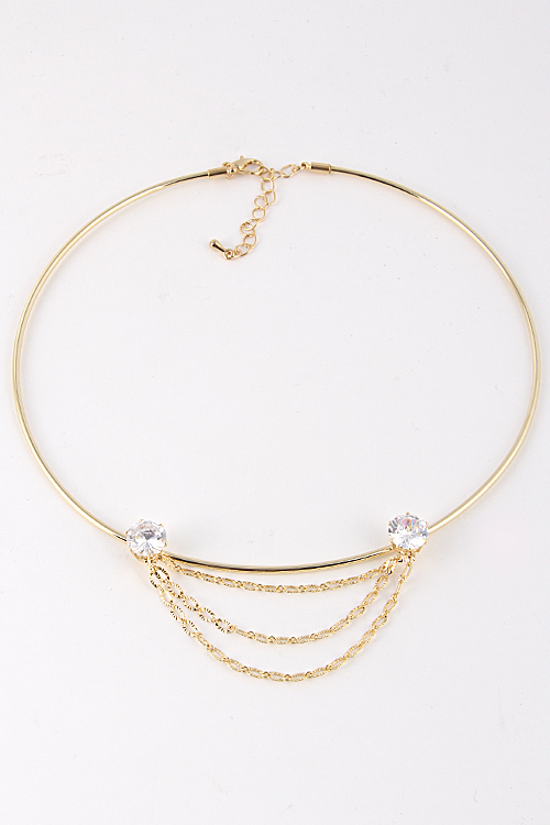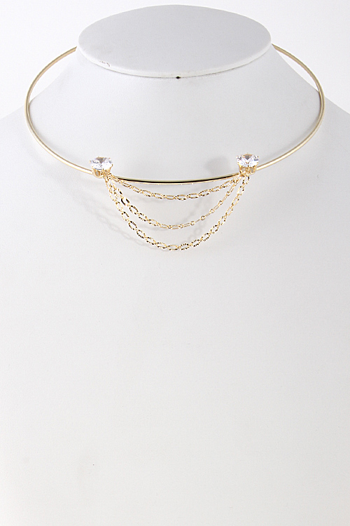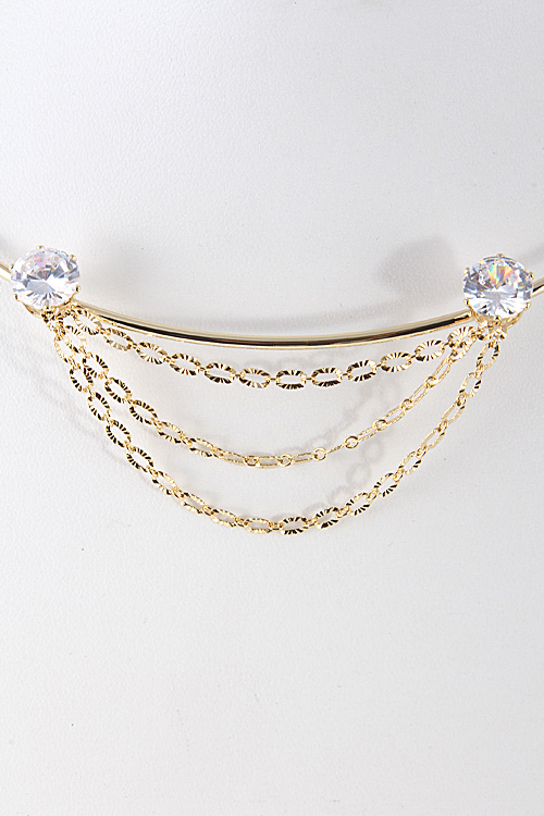 - * Two Rhinestone Chain Hanging Collar Necklace 5AAF5 * 5.5 x 5.5" approx.